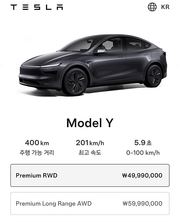 모델Y 프리미엄 RWD : 기존 5299만 원 -> 4999만 원