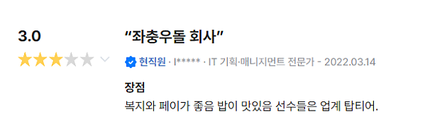 블라인드의 T1 사내평가 작성자 정보 하프라인 작성 작성일 2026.01.08 07:09 컨텐츠 정보 235,523 조회 목록 본문 이 악물고 회사 까는 사람들도 이구동성으로 장점에 써두는'밥이 맛있음'대체 얼마나 맛있길래...가서 읽어보니 밥얘기 장점에 안 쓴 사람이 딱 한명있네요 크크크 관련자료 댓글 0 등록된 댓글이 없습니다. 로그인한 회원만 댓글 등록이 가능합니다. 목록
