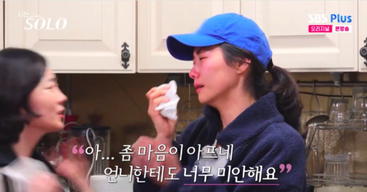 계속해서 영숙은 “좀 마음이 아프네. 언니한테도 너무 미안해요. 언니가 그 말 하는데 순간 너무 마음이 아파서 미안했다”라고 오열했다. 이에 정희는 “내가 울린 것 같아서 미안하다”라고 말했다.