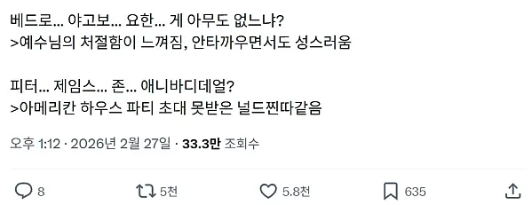 언어의 중요성 작성자 정보 하프라인 작성 작성일 2026.03.03 15:12 컨텐츠 정보 231,399 조회 목록 본문 표트르...야코프...이반....아무도 없나?-> 수용소에서 수감자 찾는 경비병 같음 관련자료 댓글 0 등록된 댓글이 없습니다. 로그인한 회원만 댓글 등록이 가능합니다. 목록