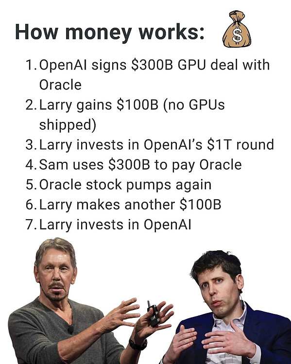 2. 오라클 창업자 Larry Ellison의 자산이 1천억 달러 늘어난다 (GPU는 아직 배송도 안 됨).