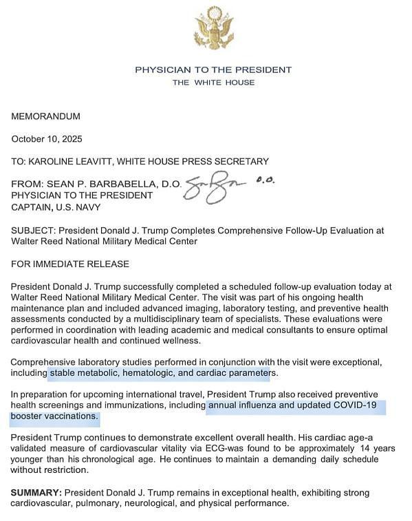 오늘자 트럼프에 대한 백악관 서신(ft. 백신 반대)