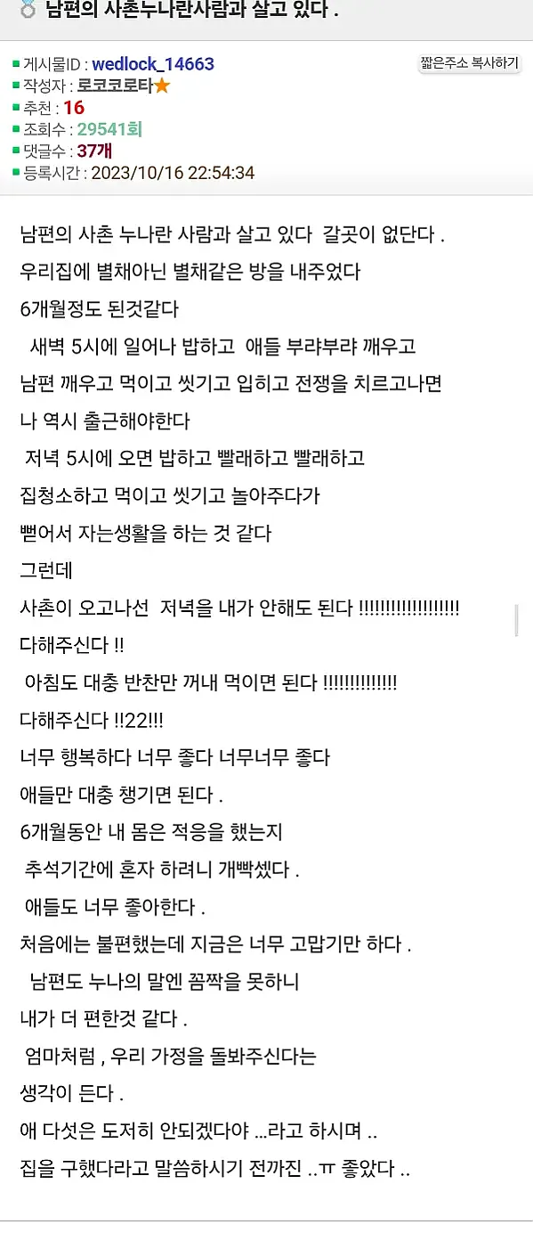 남편의 사촌누나란사람과 살고 있다 . 작성자 정보 토렉스 작성 작성일 2025.10.14 17:02 컨텐츠 정보 355,367 조회 목록 본문 애셋이 아니였다고..! 관련자료 댓글 0 등록된 댓글이 없습니다. 로그인한 회원만 댓글 등록이 가능합니다. 목록