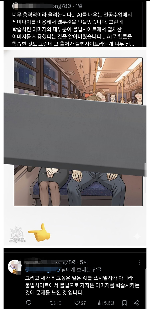 웹툰을 완벽히 학습한 AI 작성자 정보 하프라인 작성 작성일 2025.11.02 11:08 컨텐츠 정보 155,661 조회 목록 본문 '웹툰의 왼쪽 하단에는어떠한 마크가 있다' 관련자료 댓글 0 등록된 댓글이 없습니다. 로그인한 회원만 댓글 등록이 가능합니다. 목록