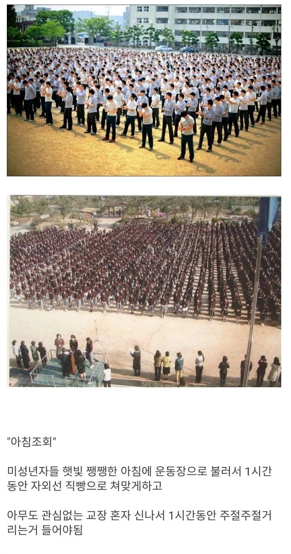 지금은 상상도 못할 학교 문화 작성자 정보 하프라인 작성 작성일 2025.11.15 11:38 컨텐츠 정보 222,318 조회 목록 본문 교장선생님 훈화가 길어져서 픽픽 쓰러지는 애들도 있었죠 관련자료 댓글 0 등록된 댓글이 없습니다. 로그인한 회원만 댓글 등록이 가능합니다. 목록