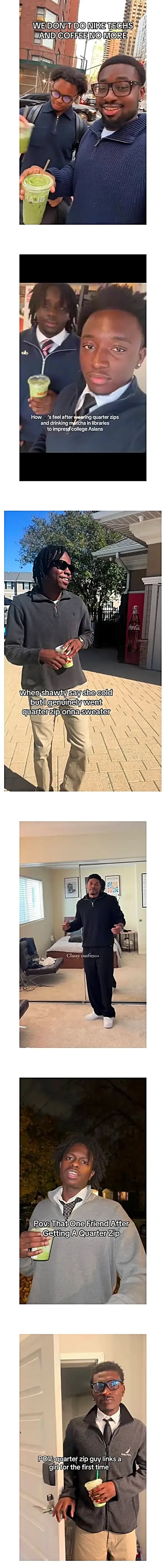 껄렁한 나이키 후디 + 트레이닝 팬츠 대신 단정한 [쿼터 집업] + 셔츠 + 면바지를 입으면 주위의 시선과 반응이 달라지고 경찰들의 검문을 피할 수 있다는 유우머.