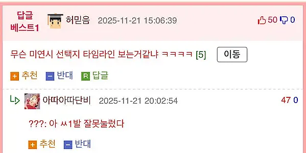 미연시 선택지를 잘못 눌렀다... 작성자 정보 하프라인 작성 작성일 2025.11.25 12:33 컨텐츠 정보 272,339 조회 목록 본문 ...에라이 관련자료 댓글 0 등록된 댓글이 없습니다. 로그인한 회원만 댓글 등록이 가능합니다. 목록