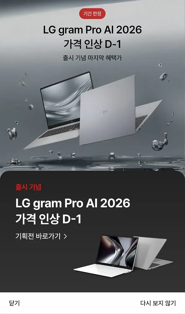 LG 가 제품은 잘 만드는데.. 작성자 정보 하프라인 작성 작성일 2026.02.03 11:53 컨텐츠 정보 37,195 조회 목록 본문 마케팅 팀이 참..여름에 콜라를 비싸게 팔겠습니다도 아니고.. 관련자료 댓글 0 등록된 댓글이 없습니다. 로그인한 회원만 댓글 등록이 가능합니다. 목록